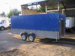 Пример платформы прицепа-трейлера с выдвижными (а не откидывающимися) трапами. Так же пример тента различной формы. Грузоподъёмность до 1,3 тн.
